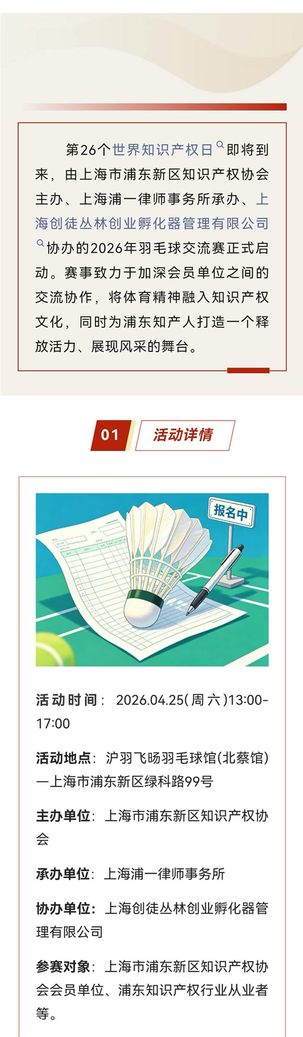 《“浦一杯”——IP·羽你有约》知识产权人才羽毛球交流赛邀请函!